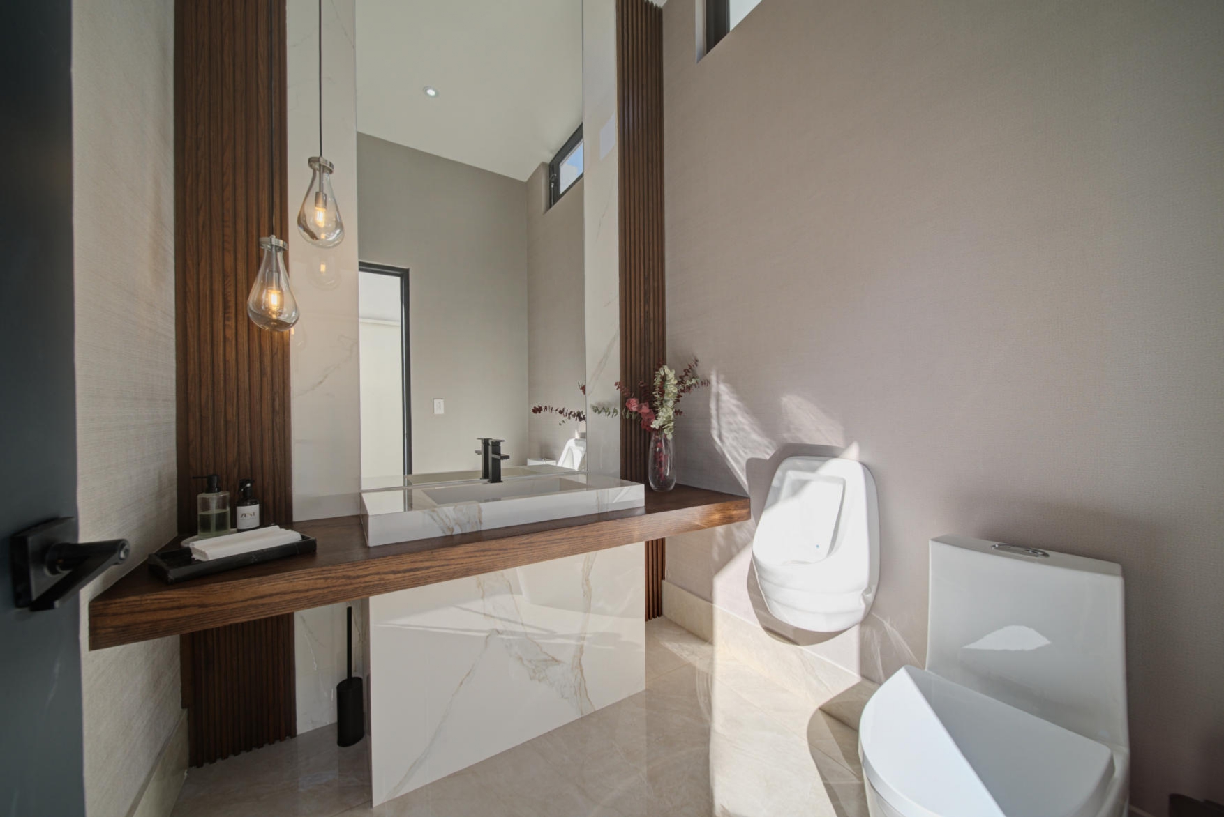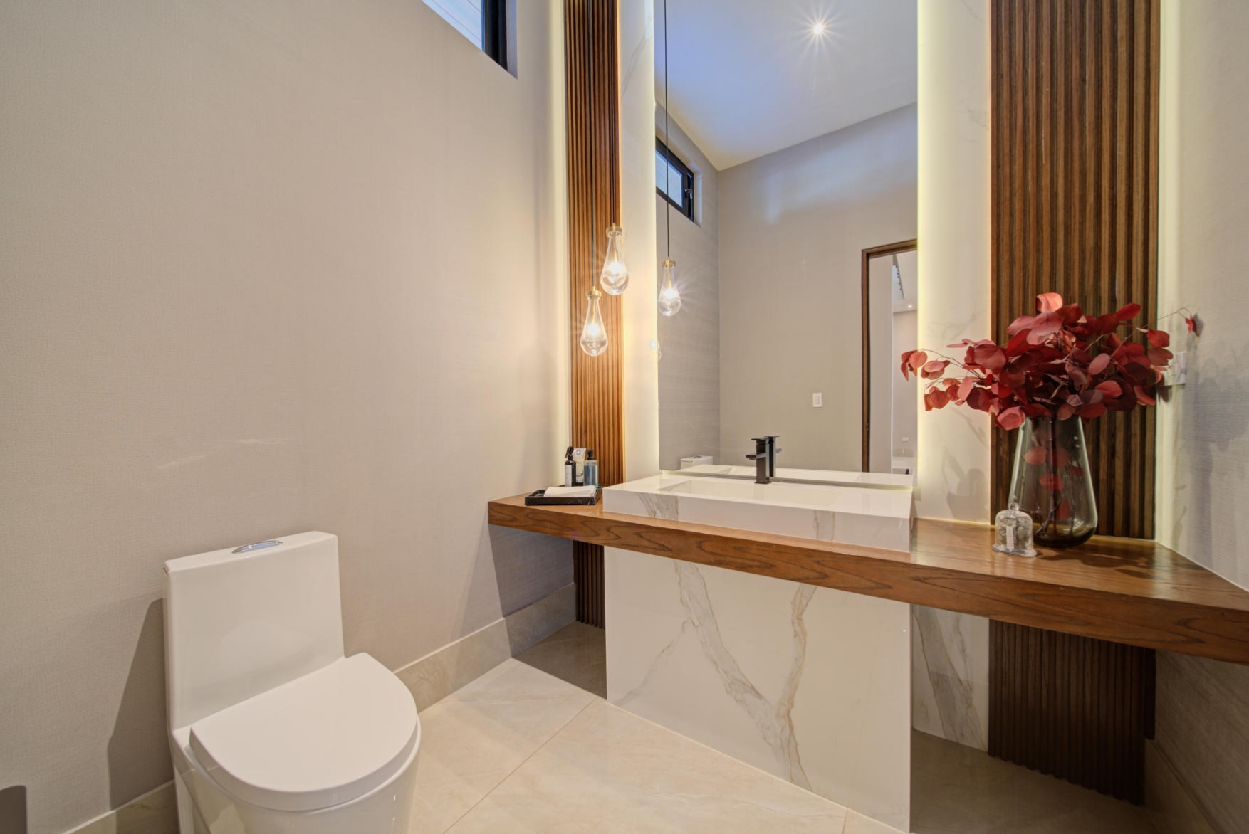 Two guest half bathrooms (one indoors and one outdoors)