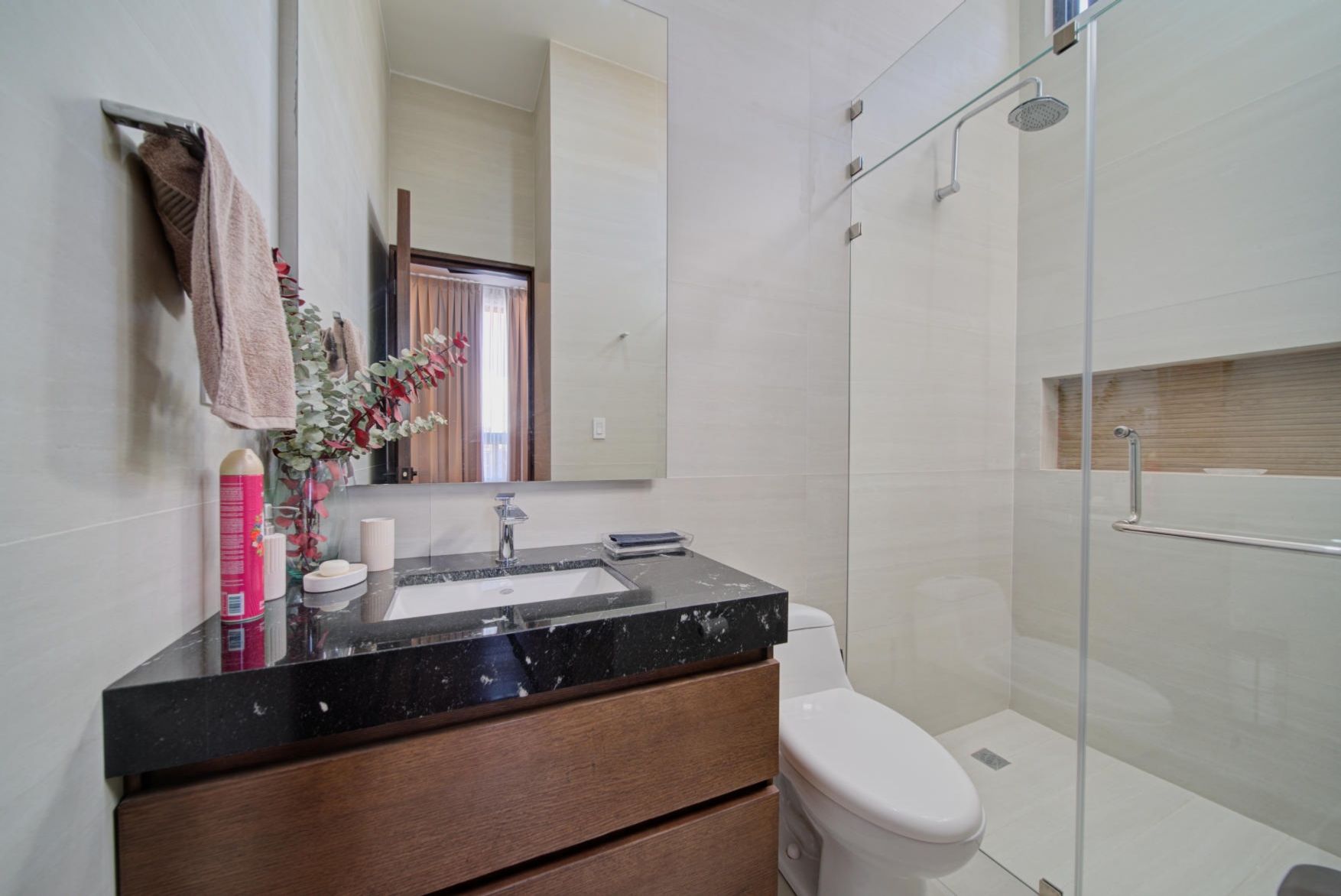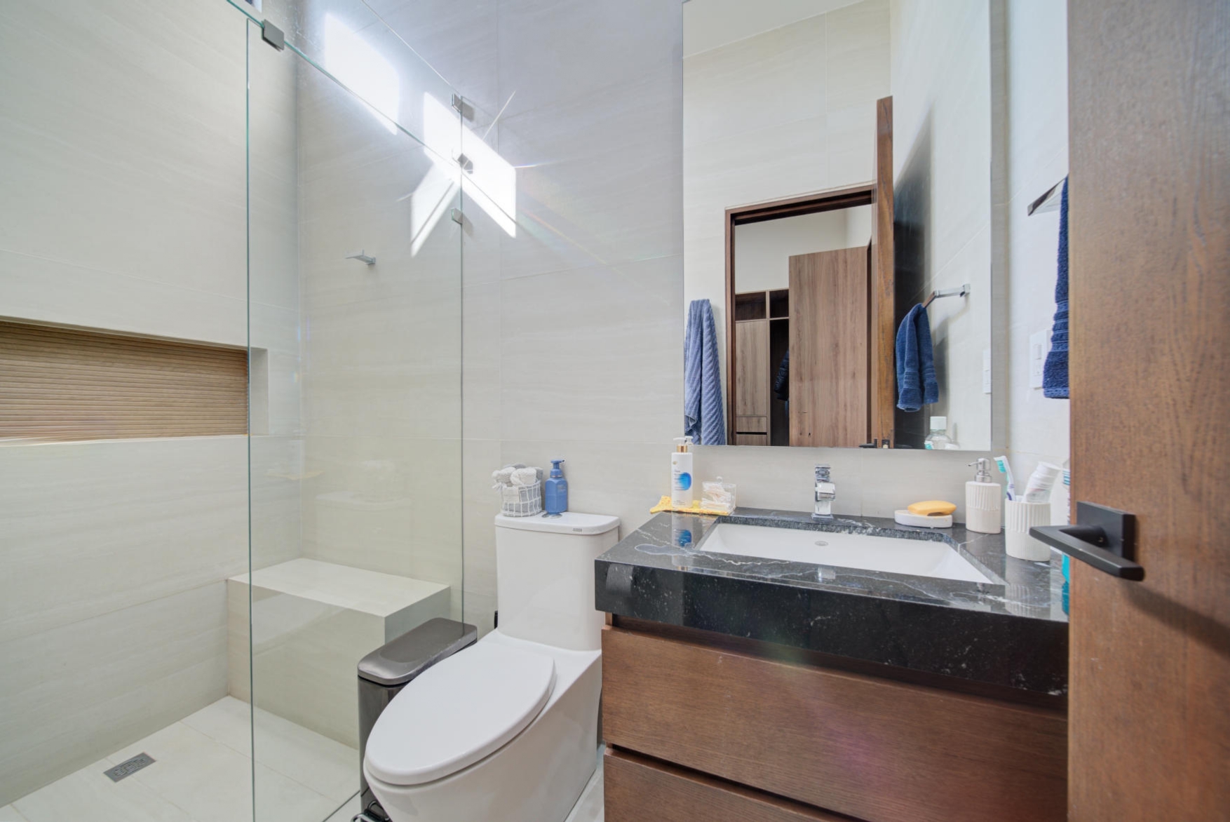 One guest bedroom with closet and private bathroom