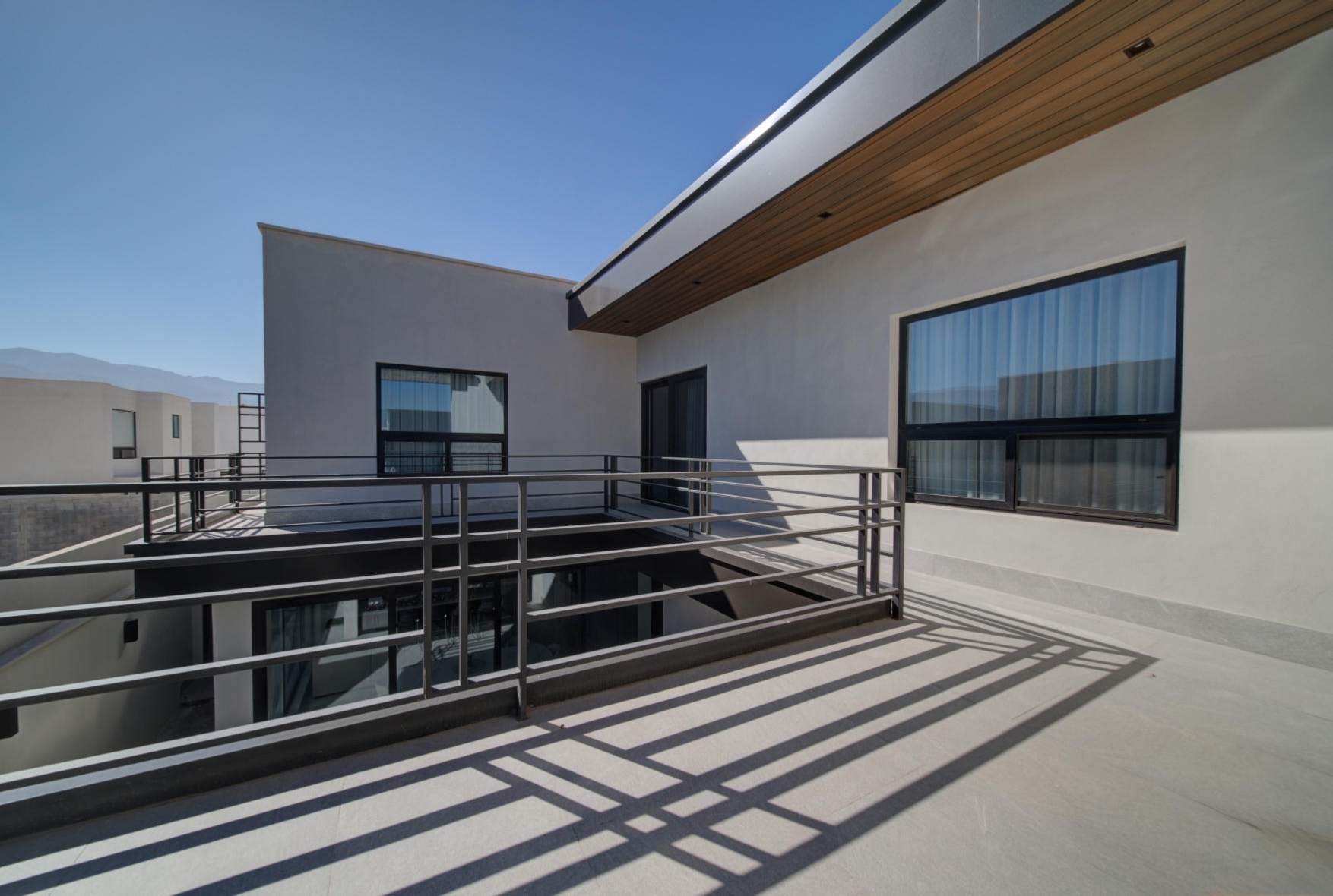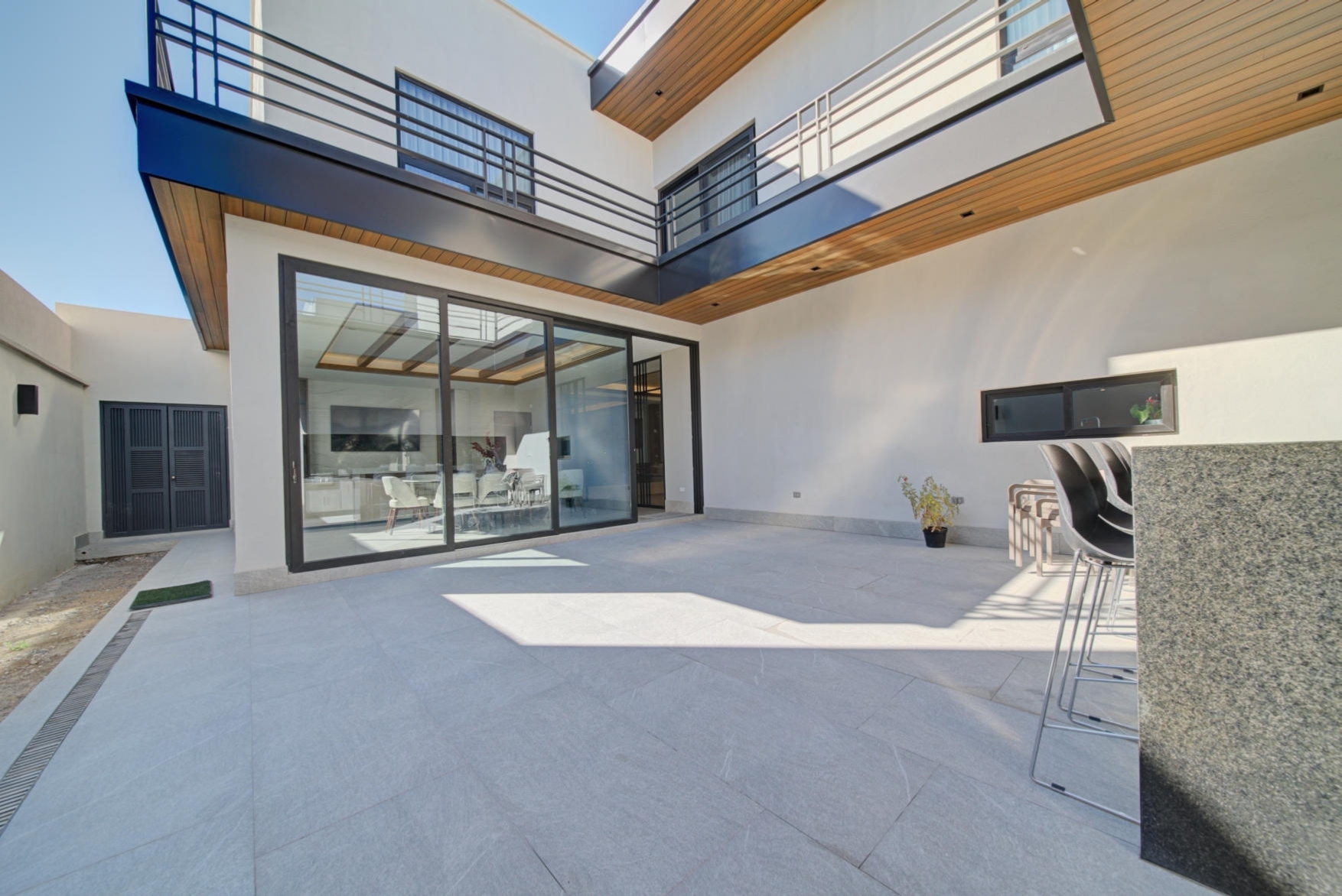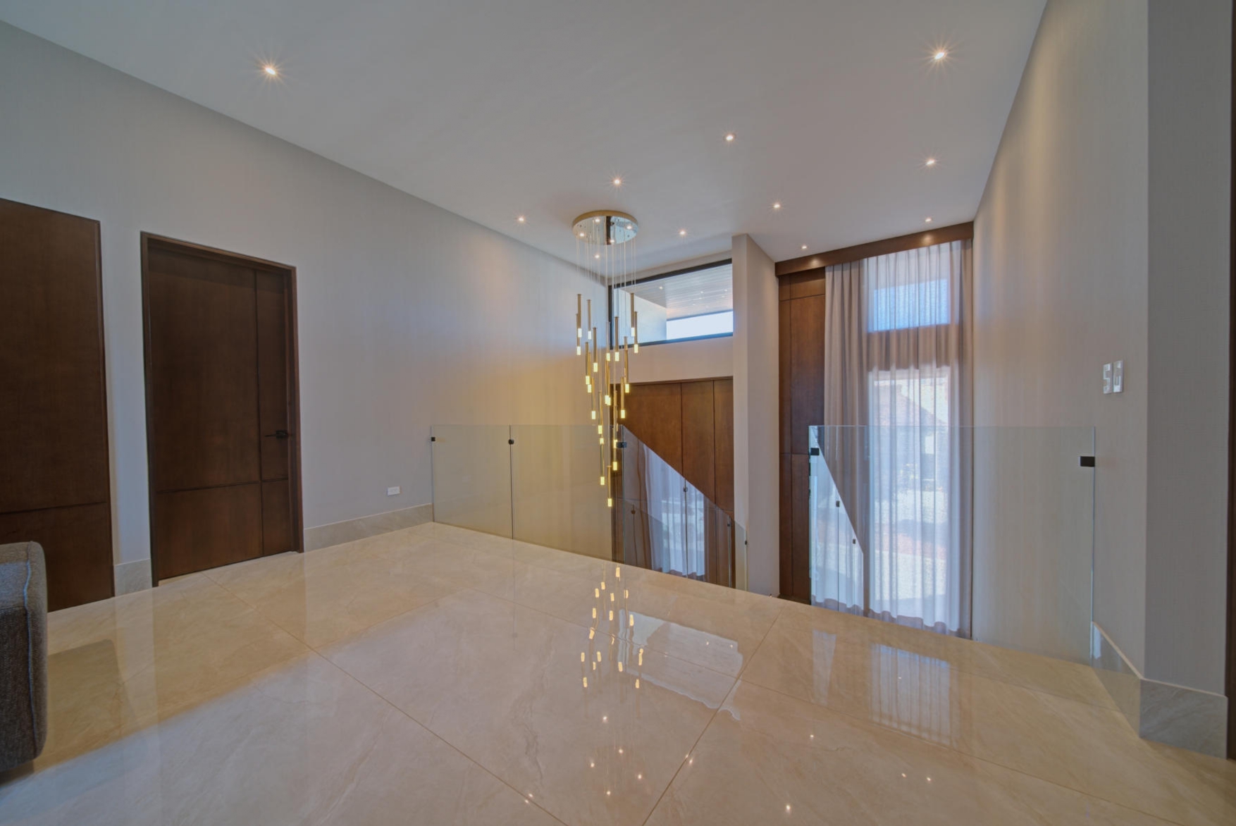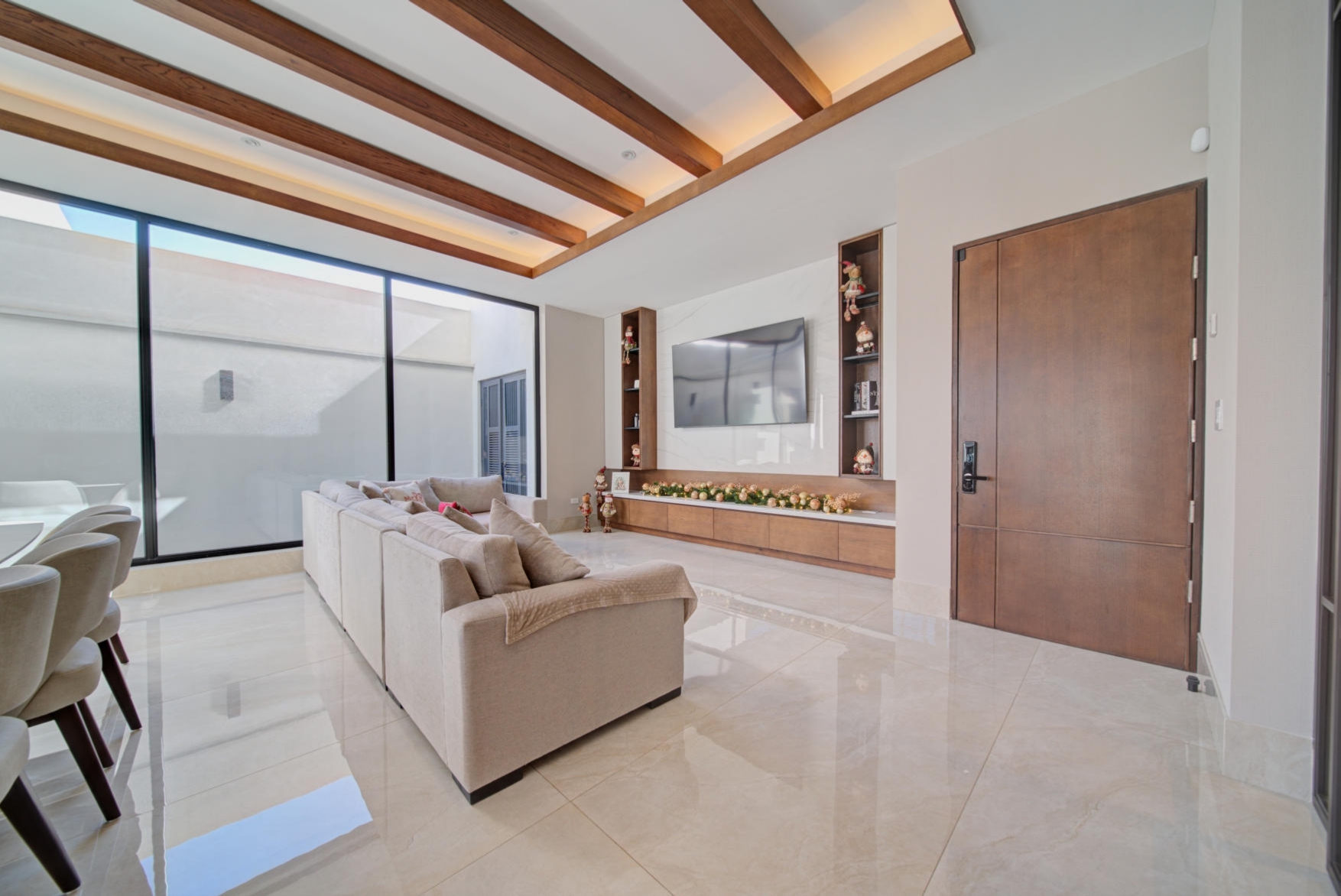 Sophisticated social area with panoramic glass windows