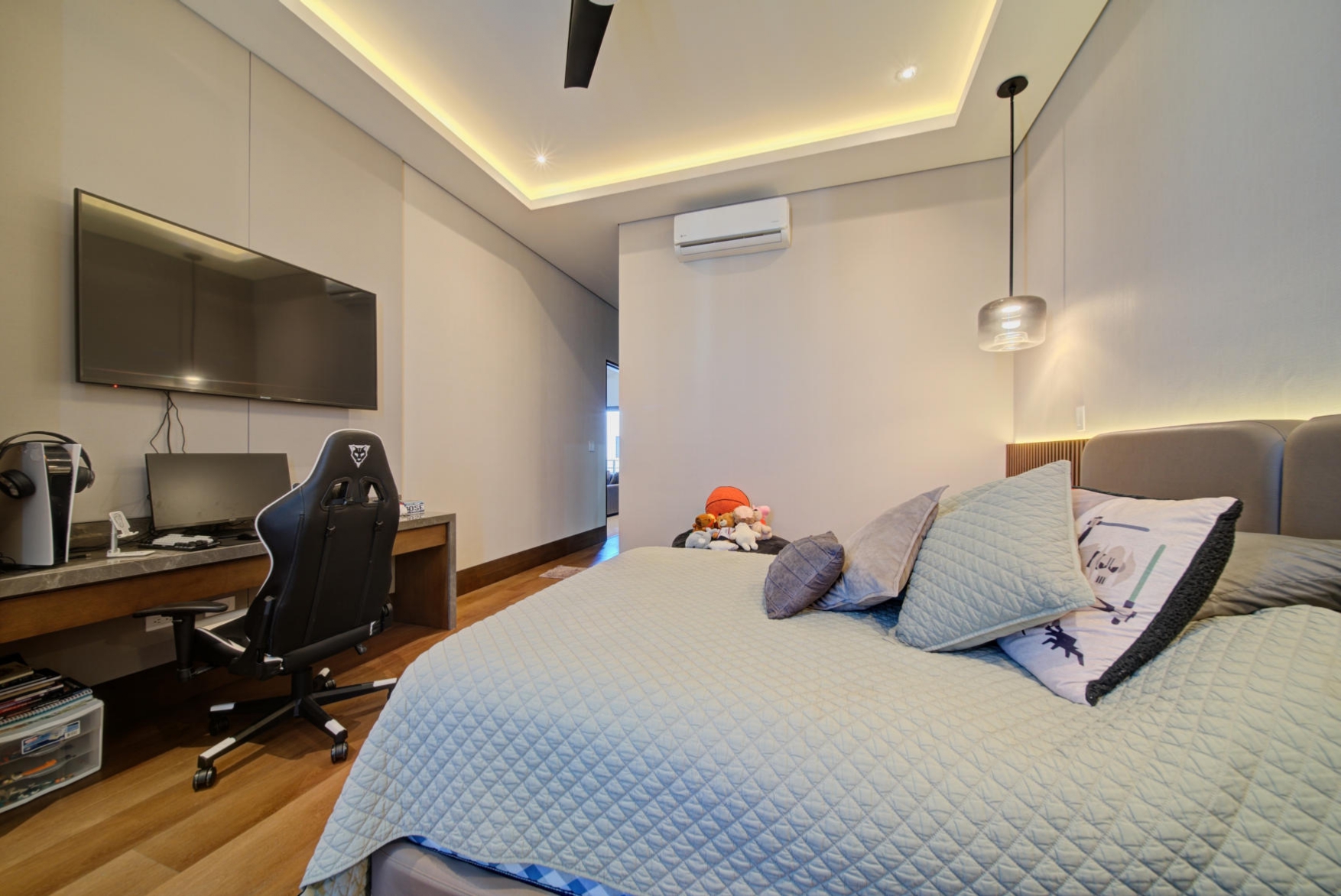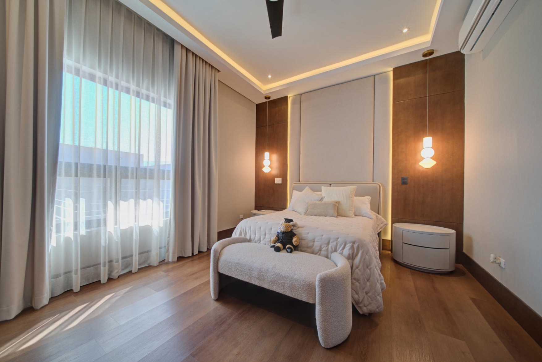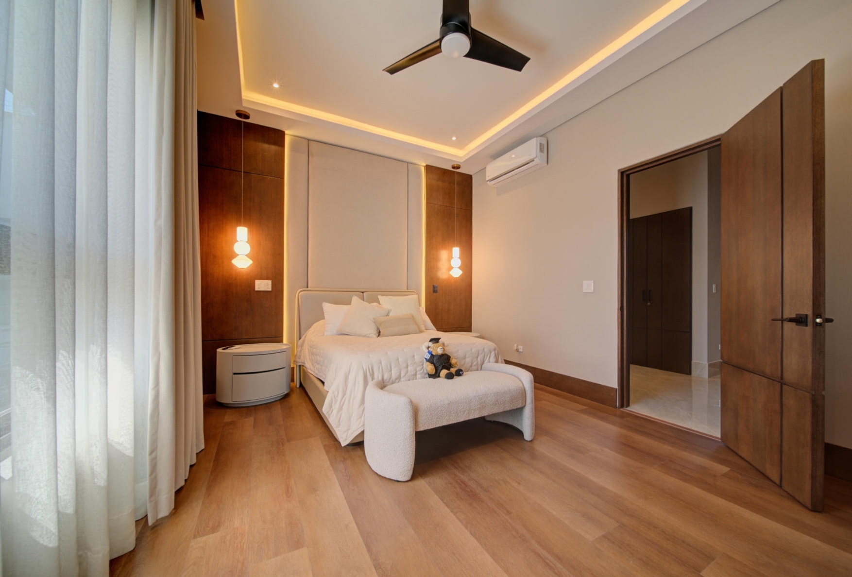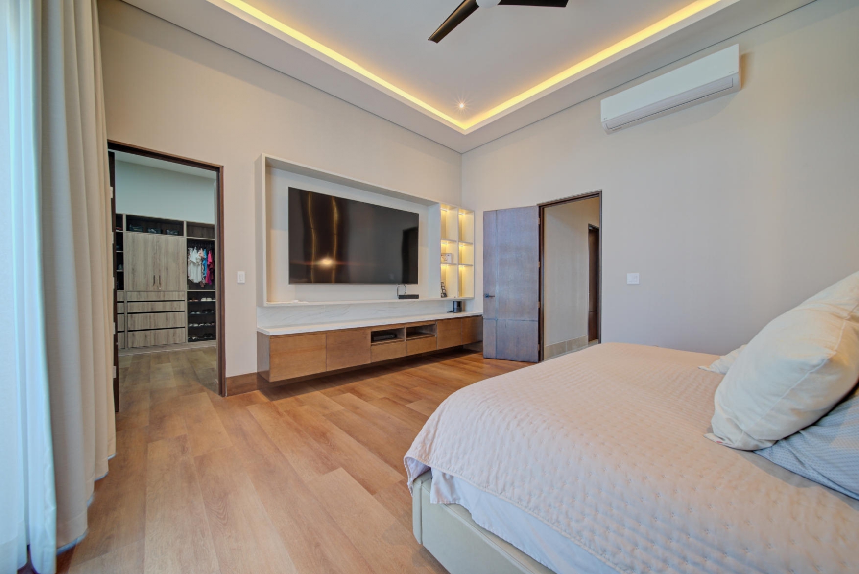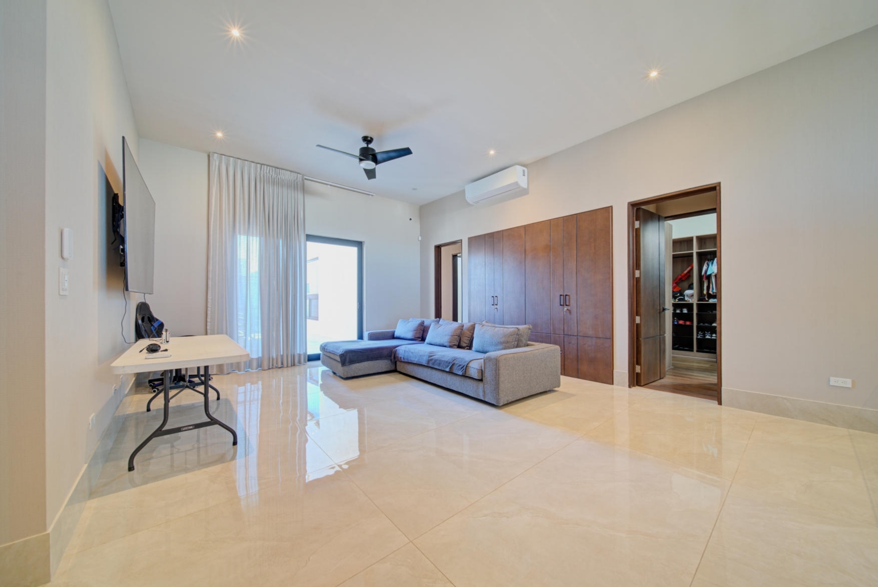 Mini-split air conditioning units in the family room, all bedrooms, and the study
