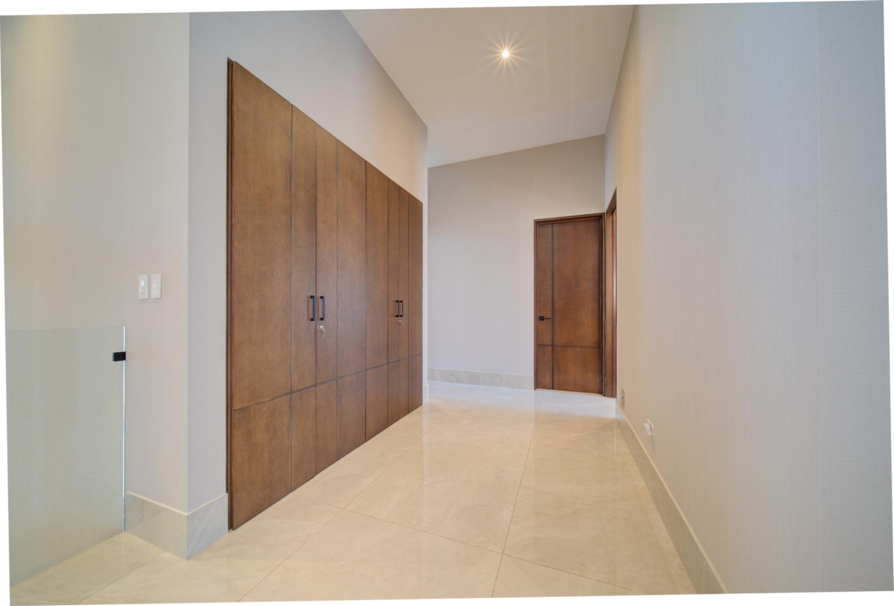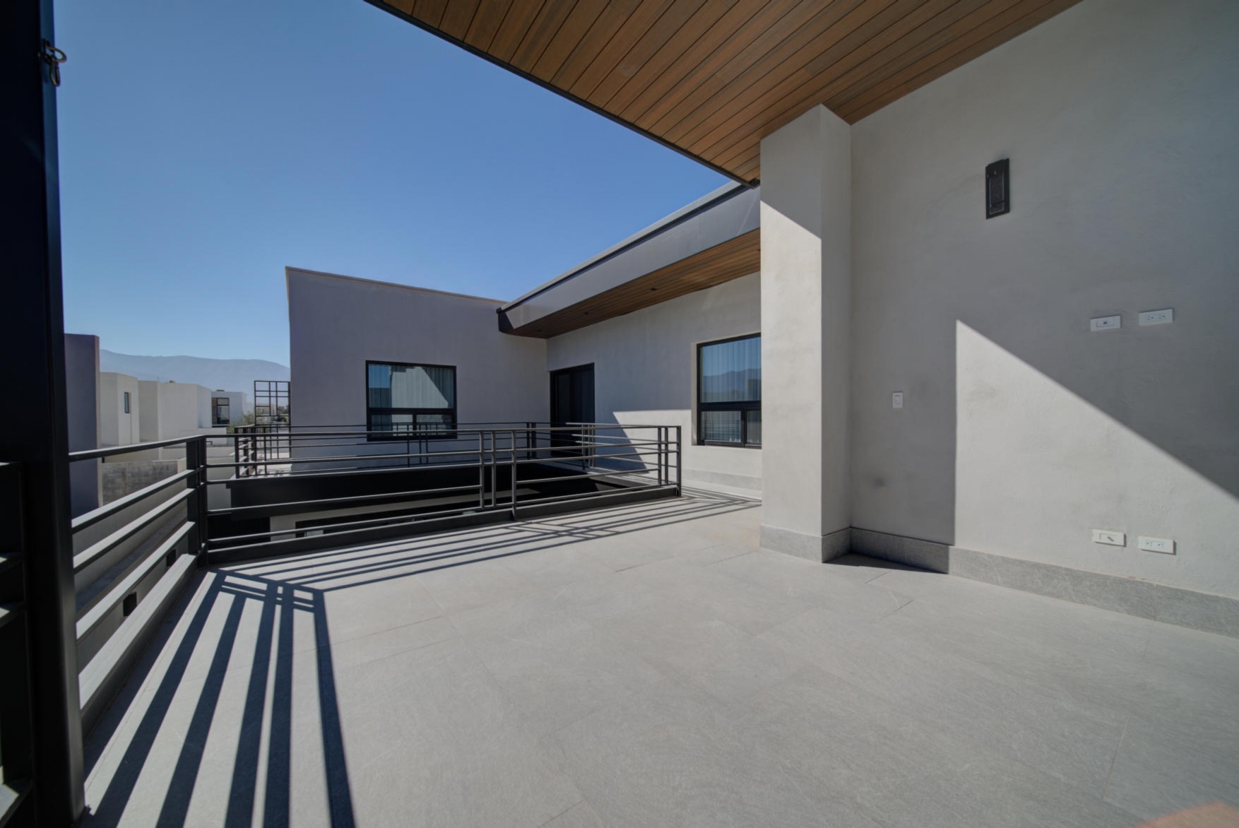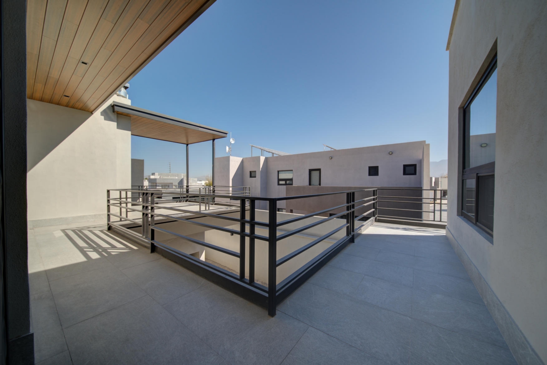 Large family living area with two linen closets with utility sink, ironing room, and a pleasant upper-level terrace